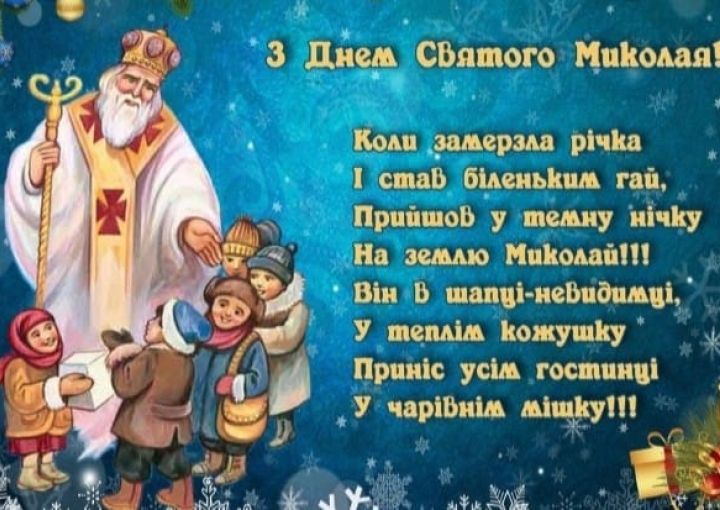 Чарівний і довгоочікуваний день — День святого Миколая. В цей день Микола Чудотворець ближче до нас, як ніколи! В цей день він почує і зрозуміє всі наші молитви і прохання… Варто лиш молитися щиро, від усієї душі, з жаром люблячого і спраглого серця у кожному нашому слові! Не дарма ж у цей день дарують подарунки і бажають благополуччя. Все, що ми бажаємо близьким і коханим, обов’язково збудеться! Бажаю всім щастя, бути здоровими і щасливими, любити і бути коханими довіку!