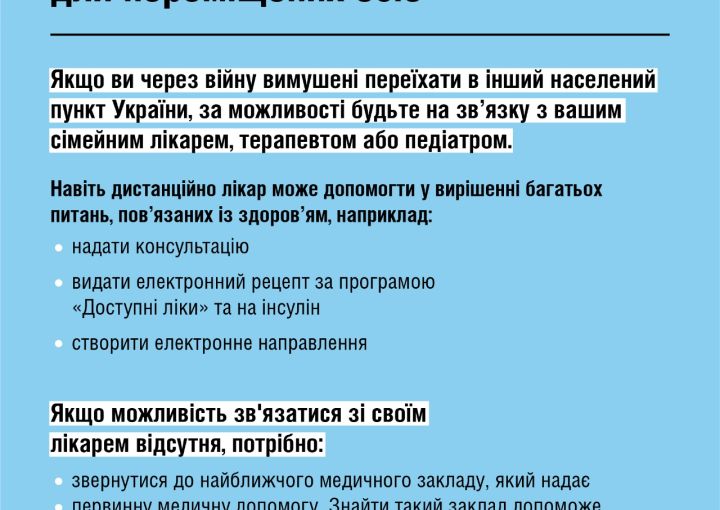 Медична допомога сімейного лікаря, терапевта або педіатра внутрішнім переселенцям. Що потрібно знати?
