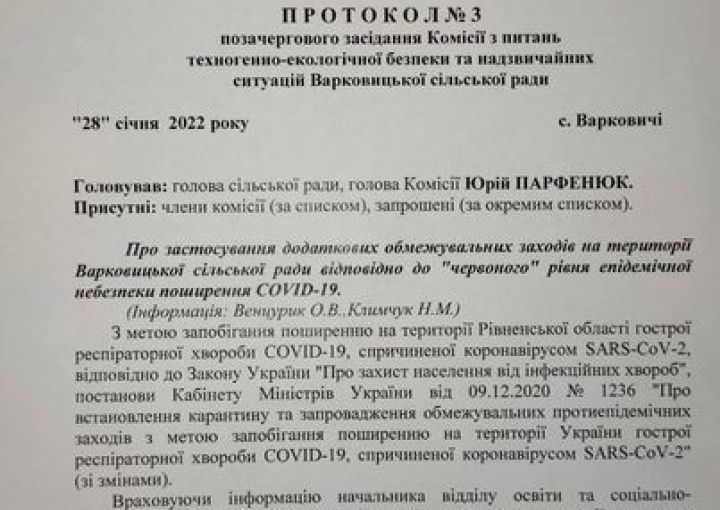 На території Варковицької ТГ вводяться додаткові обмежувальні заходи відповідно до «червоного» рівня епідемічної небезпеки поширення COVID-19.